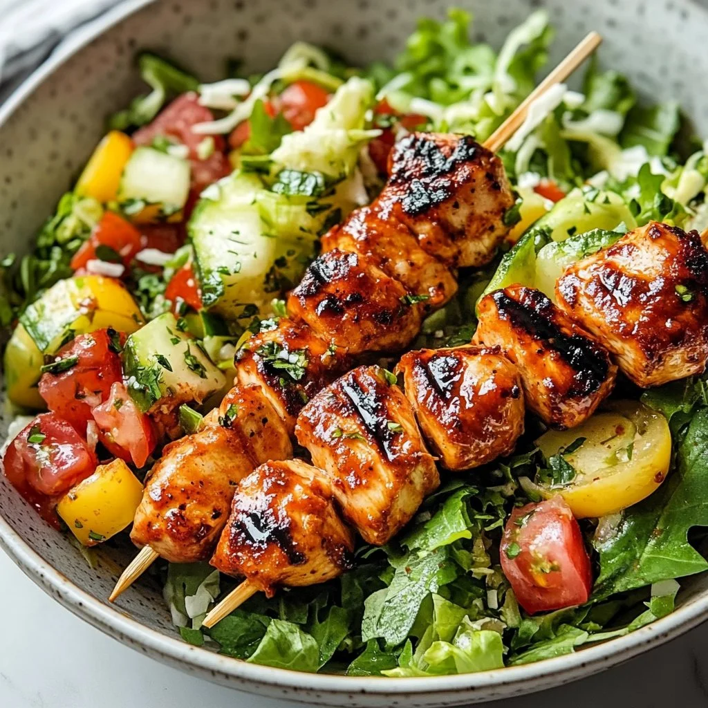 BBQ Chicken Skewer Salad is a winner for several reasons. First, the flavors blend perfectly. The grilled chicken, combined with crispy veggies and a zesty dressing, brings an explosion of taste. The sweetness of the barbecue sauce pairs wonderfully with fresh herbs, making each mouthful delightful.