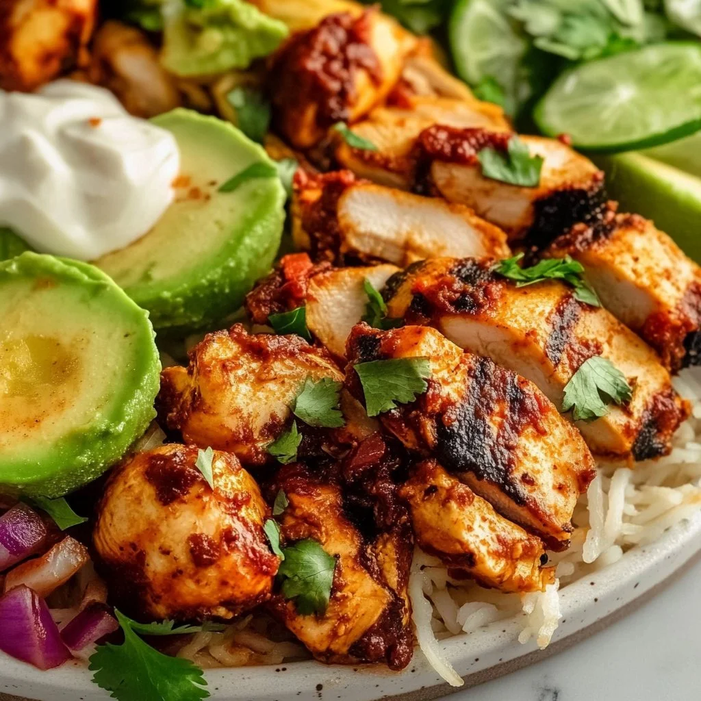 Serving Chipotle Chicken Al Pastor can be as simple or elaborate as you like. I love placing everything out buffet-style so that my family can build their own tacos or burrito bowls. Provide warm tortillas, a side of black beans, and rice, along with toppings like freshly sliced avocado, radishes, and pickled red onions. It’s a family affair – everyone can create their own perfect bite.
