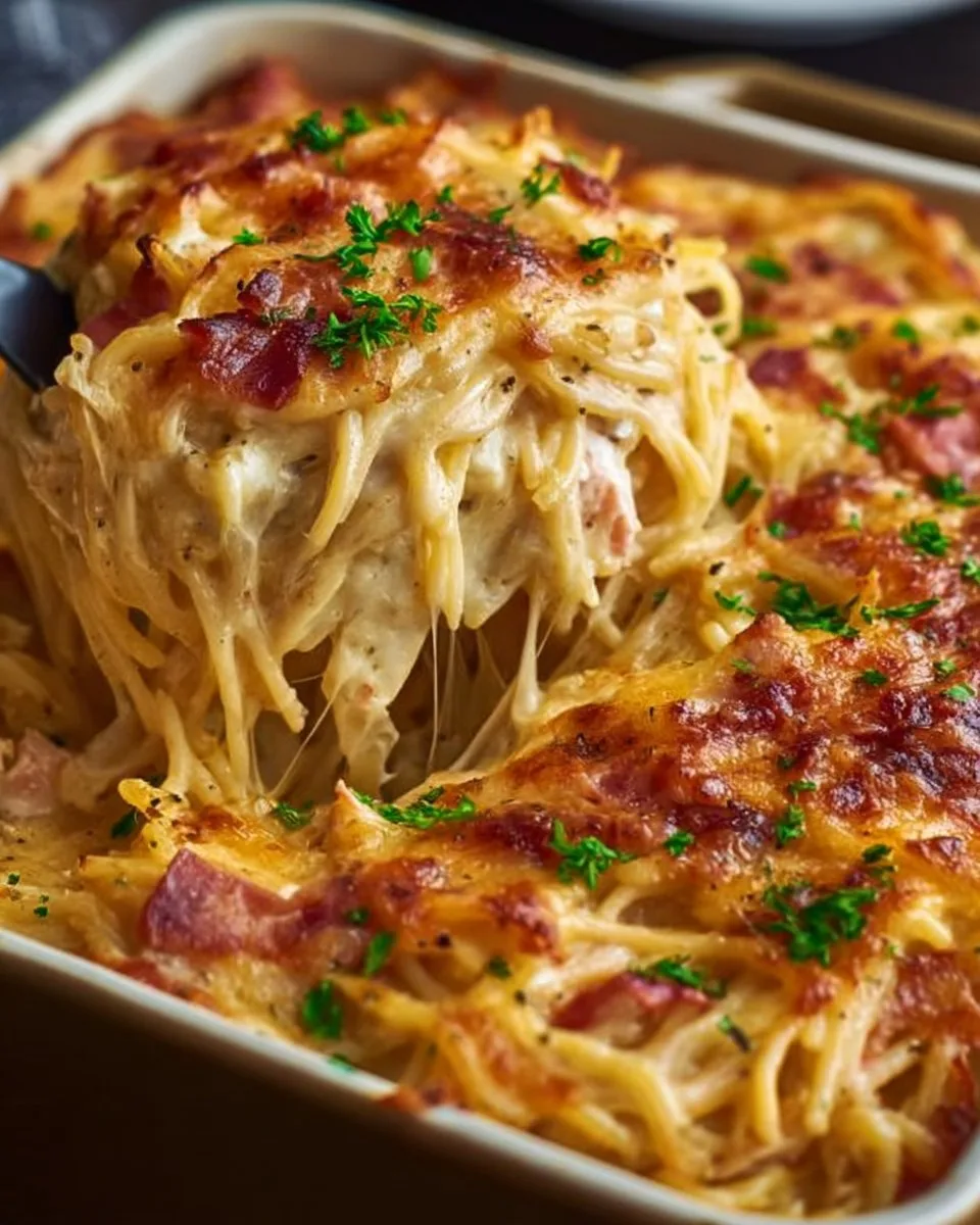 Creamy Southern Spaghetti Bake is a heartwarming dish perfect for family gatherings or a cozy dinner at home. This recipe combines tender spaghetti with creamy, rich ingredients and savory chicken, topped with cheese and crispy bacon. It’s easy to make and always a crowd-pleaser, making it a great choice for both busy weeknights and special occasions.