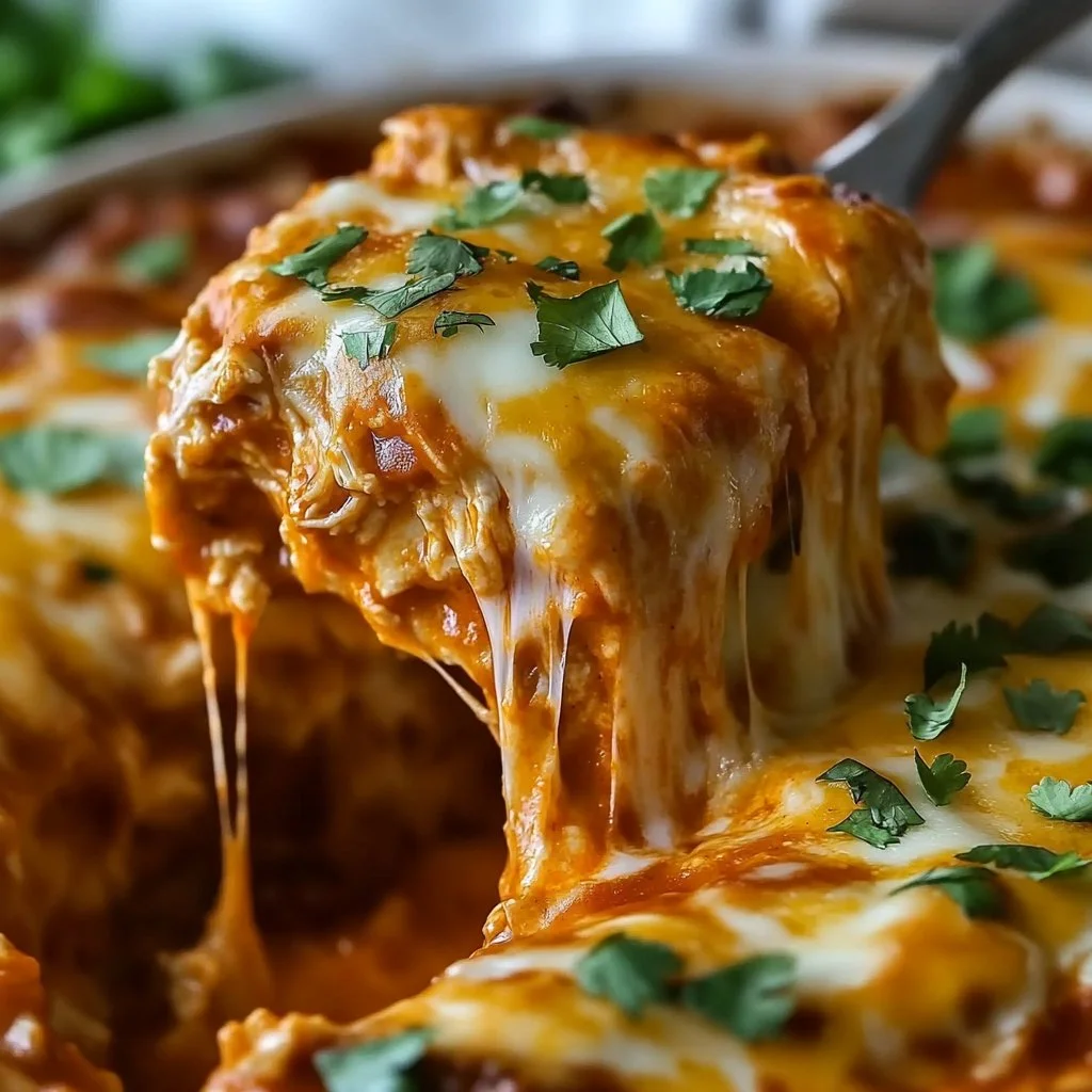 Moreover, the combination of creamy cheese, hearty chicken, and zesty enchilada sauce makes every bite a delightful experience. This dish not only caters to the keto lifestyle but also pleases even the pickiest eaters.