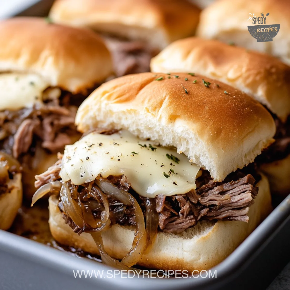 At its heart, this dish is about contrasts. Soft buns meet slightly crisped edges from the oven. Warm broth meets melting cheese. Savory beef meets a whisper of horseradish for brightness. The textures and flavors play off each other in a way that feels both homey and a little special.