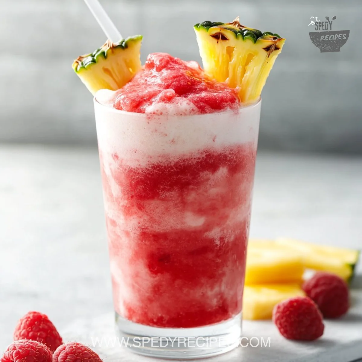 Quick tip: If your blender is weak, let the raspberries sit for a few minutes to soften at room temperature. If you like a thicker, almost frozen texture, add more frozen raspberries or reduce the pineapple juice slightly.