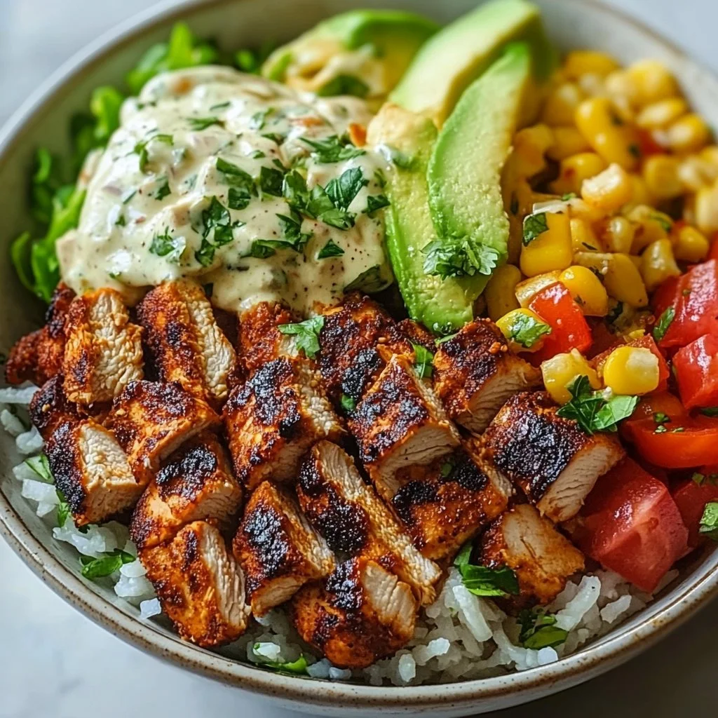 One of the best parts? It’s quick to prepare. You can whip this up on a busy weeknight or enjoy a leisurely weekend cooking session. The marinade makes the chicken tender and flavorful, while the toppings let each family member customize their bowl. It encourages conversation and interaction, making mealtime a cherished moment.
